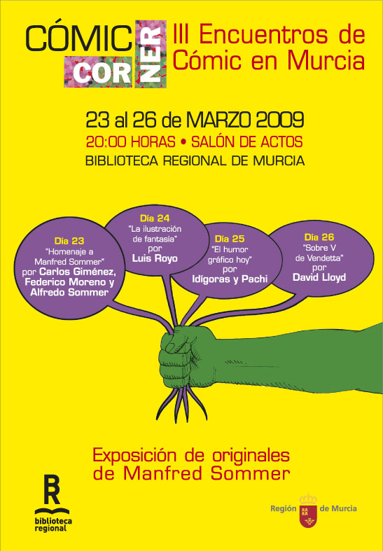 La Biblioteca Regional de Murcia será la entidad anfitriona de una nueva edición de Cómic Córner, los III Encuentros de Cómic en Murcia, coordinados por los dibujantes Juan Álvarez y Jorge Gómez